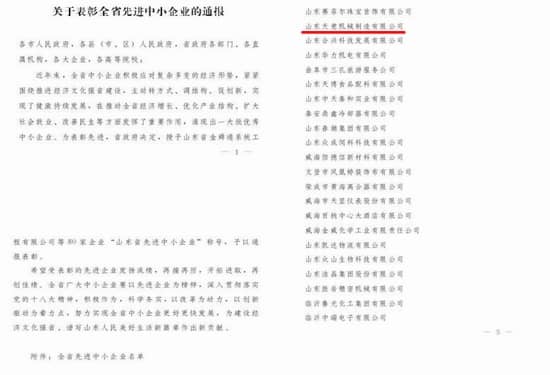 中國中小企業(yè)山東網(wǎng)公布了《關(guān)于表彰全省中小企業(yè)的通報》,山東天意機械股份有限公司被評為全省先進中小企業(yè)!