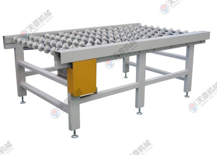 適用于背涂膠后硅酸鈣板、水泥纖維板、玻鎂板等進行流水作業(yè)時的工件對中輸送。采用尼龍輪輸送,既能減少與膠面的接觸面積還能保證板材的平穩(wěn)輸送。具有將板材對中的作用,提高了生產(chǎn)線的工作效率。